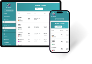 - Event Management: Create, manage, and track one-off, termly, monthly, or pay-as-you-go events.